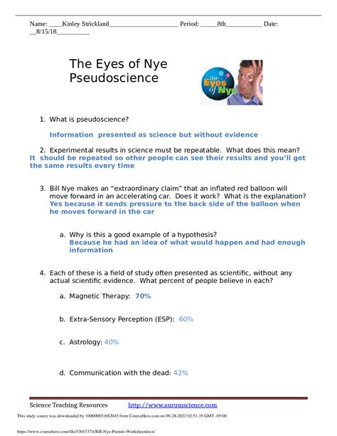 Some of the worksheets for this concept are bill nye the science guy pseudoscience, bill nye the science guy. Respectively video worksheet includes an. Strange or unusual claims need especially.